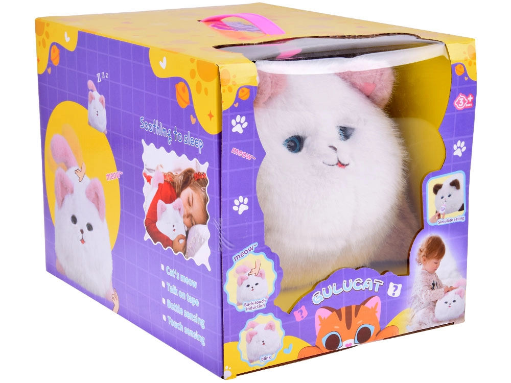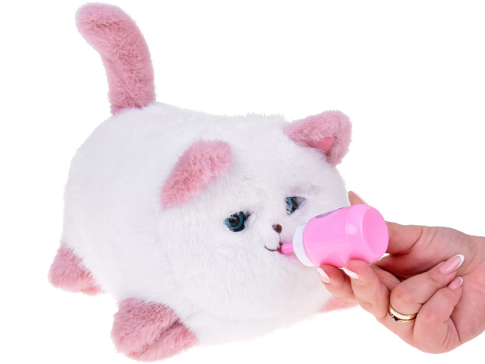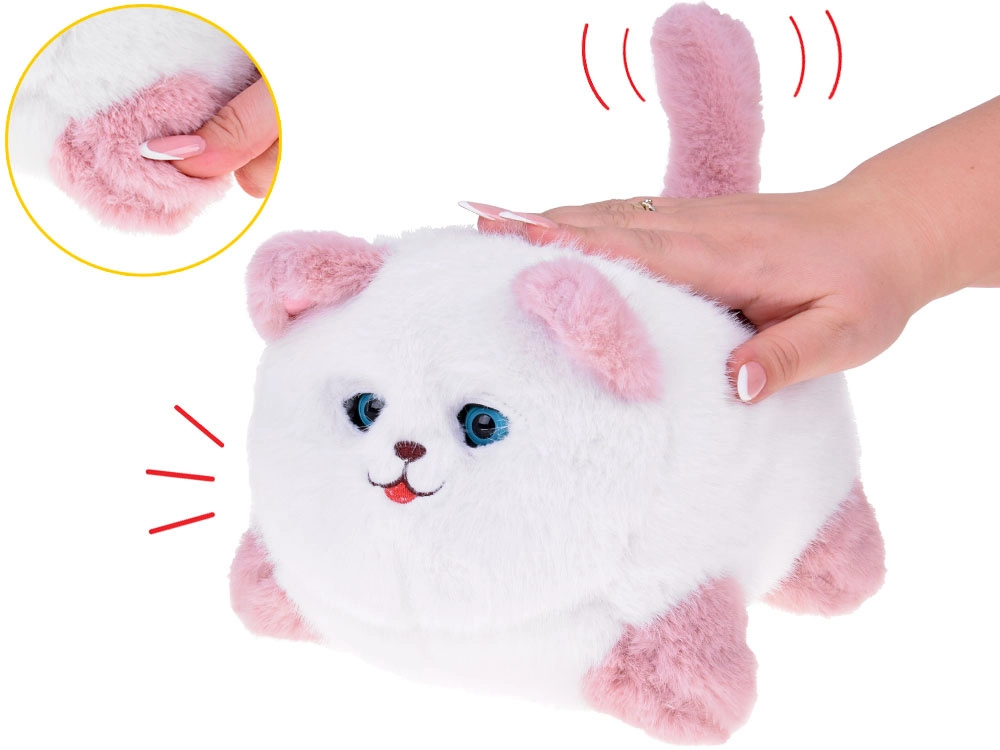 Upoznajte mačku Pusia, interaktivnu igračku koja je poput vašeg pravog ljubimca. Ova mekana bijela mačka s ružičastim šapicama i repom ima efektne zvučne i pokretne funkcije. Nakon maženja po leđima aktiviraju se zvukovi mijaukanja i predenja – popraćeni pokretima repa i treptanjem očiju, što stvara realističan doživljaj.