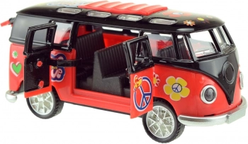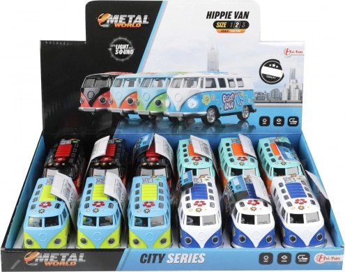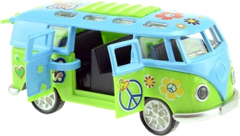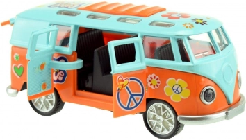 Otkrijte minijaturni retro autobus koji odmah privlači pažnju šarenim “hippie” stilom, a nakon pokretanja iznenađuje efektima. Dovoljno ga je naviti unatrag i pustiti – setrvačnik se pobrine za brzu vožnju, dok svjetla i zvuk motora pojačavaju doživljaj.
