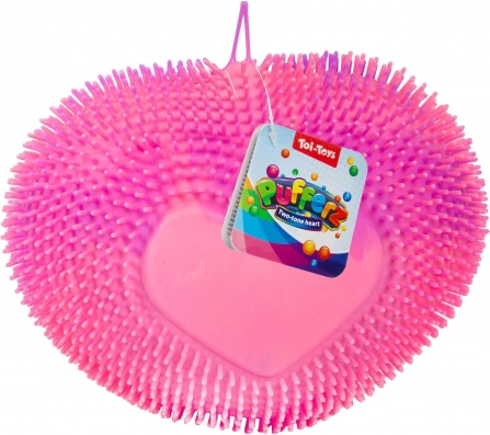 Ovo puffer antistresno srce izrađeno je od podatnog, mekog silikona i ima nježne, meke “bodljice” koje pružaju ugodnu taktilnu stimulaciju. Idealno za smirivanje, opuštanje nakon napornog dana te kao pomagalо za senzornu igru. Zahvaljujući ušicu za vješanje možete ga staviti na torbu ili u sobu.