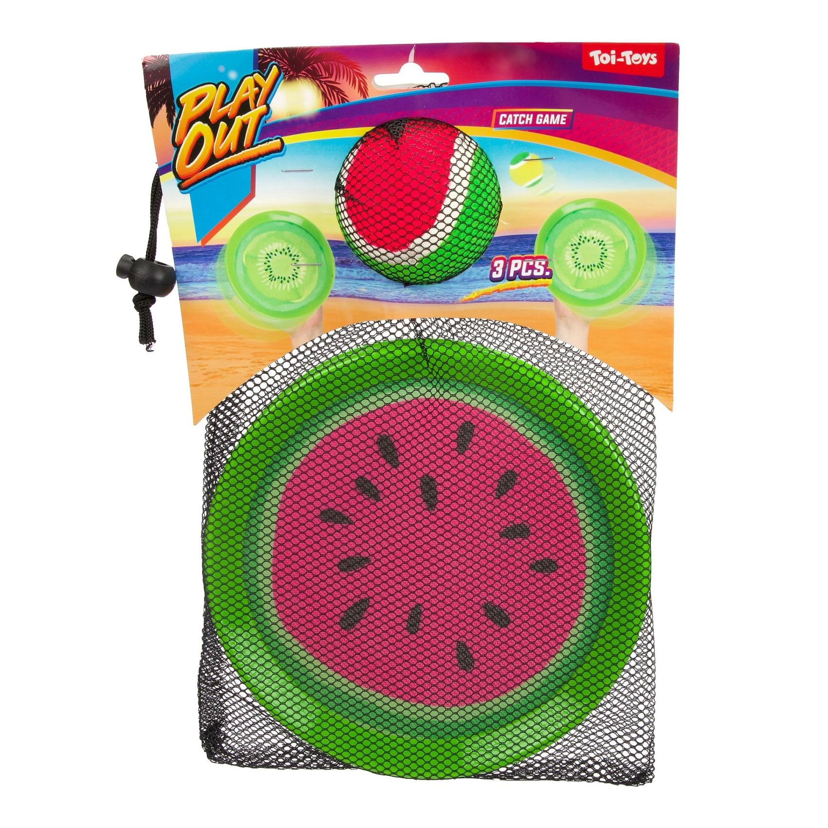 Set u mrežastoj vrećici idealan je za putovanja. Narančasti motiv i lagna plastična reketica omogućuju lako hvatanje i brzu akciju bilo gdje.