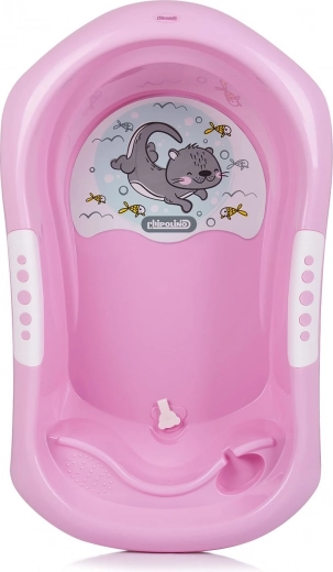 Ružičasta kadica nudi ergonomski oblik s protukliznom površinom za sigurno i ugodno kupanje.
