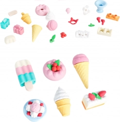 U ovom atraktivnom setu pronaći ćete gumice koje podsjećaju na sladoled, kekse, deserte i muffine – svaka je pažljivo detaljizirana i blista živim bojama.