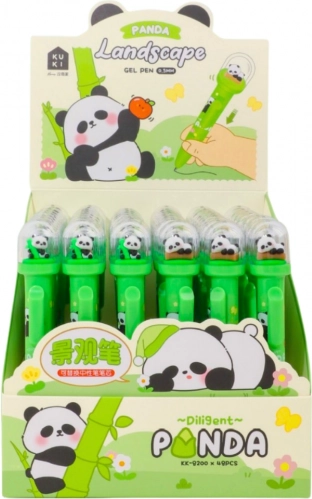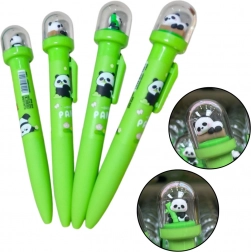Zelena gel olovka s preslatkim pandom u prozirnoj kupoli nudi ne samo praktično rješenje za pisanje, već i zabavan i estetski dodatak za vaš radni stol ili školsku torbu. U gornjem dijelu kućišta nalazi se minijatura pande u pomičnoj kupoli, što proizvodu daje jedinstven šarm.