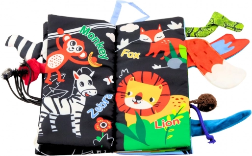 Šuškave stranice i izbočeni repići životinja s različitim teksturama i bojama stimuliraju djetetova osjetila, potiču znatiželju i razvijaju manualne vještine. Šarene ilustracije životinja, poput zebre ili žirafe, potiču učenje i igru. Knjiga je lagana i lako prenosiva, idealna za putovanja ili šetnje.
