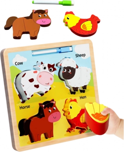 Drvena edukativna slagalica Domaće životinje s pločom za crtanje
