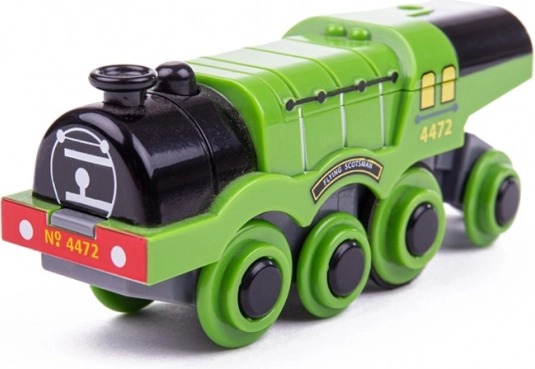 Ikonična replika parne lokomotive FLYING SCOTSMAN za drvene željezničke setove oduševit će snažnom vučom, automatskom vožnjom naprijed i jednostavnim upravljanjem jednim gumbom. Zahvaljujući magnetskom sustavu povlači više vagona, kompatibilna je s većinom drvenih tračnica i razvija maštu i motoriku djece.