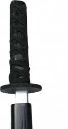 Drška je opletena materijalnom vrpcom, što daje realističan izgled i bolji hvat pri korištenju. Katana je lagana, dobro balansirana i sigurna za tehničke vježbe te kao scenski ili dekorativni element.