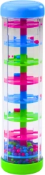 Senzorna cijev s obojenim kuglicama savršena je za razvoj osjetilne percepcije i koncentracije djece. Kada se cijev okrene, kuglice počnu skakati po spiralnim platformama i proizvode smirujući zvuk koji podsjeća na kišu.