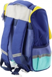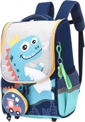 Školski ruksak ima jedan prostrani glavni džep, prikladan za čuvanje knjiga, bilježnica i školskog pribora. Na prednjoj strani nalazi se odvojiva torbica s motivom lokomotive, koja može služiti kao zasebna kutija ili ukras. Dekorativni privjesak s dinosaurima dodaje ruksaku šarm i karakter.