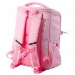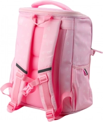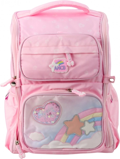 Torba je opremljena jednom velikom glavnom komorom koja olakšava spremanje knjiga, bilježnica i većih predmeta. Prednji dio ima tri dodatna džepa za pernicu, užinu ili dodatnu opremu. Bočne strane imaju dva elastična džepa za bocu ili bidon.