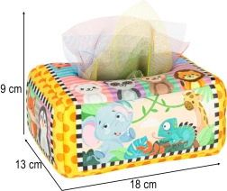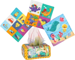 Tražite igračku koja će očarati vaše dijete i istovremeno poticati njegov motorni i senzorički razvoj? Ovaj preslatki Montessori sorter u obliku mekane kutije s šarenim maramicama i tkaninama s uzorcima upravo je ono što trebate! Proizvod je dizajniran s obzirom na najmlađe - siguran, izdržljiv i lako čistiv.