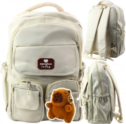 Izgled ruksaka dopunjen je ukrasnim bedževima s motivima kapibare i plišanim privjeskom u obliku kapibare, koji dijete može pričvrstiti prema vlastitoj želji i personalizirati izgled svog ruksaka.