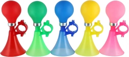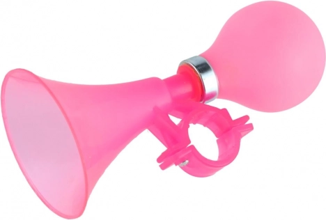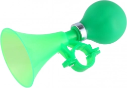 Nakon pritiska na gumeni balon, zvono proizvodi izražajno trubljenje koje upozorava okolinu i povećava uočljivost i sigurnost tijekom vožnje. Idealan dodatak za igrališta, biciklističke staze i park.