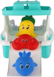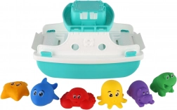 Ovaj dječji čamac za kupanje osmišljen je za zabavu i razvoj vještina. Pluta na vodi, ima preklopnu rampu za ukrcaj i iskrcaj figurica te nudi dovoljno prostora za igru na palubi. U kompletu su mekane, šarene morske i životinjske figurice koje djeca mogu voziti, slagati i spuštati niz r rampu.