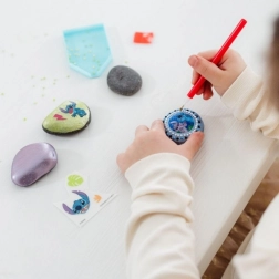 Ovaj zabavni kreativni set pruža sate stvaranja. Zahvaljujući prijenosnim naljepnicama i otprilike 400 kom dekorativnih kamenčića lako ćete izraditi originalne kamenčiće inspirirane omiljenim motivom Stitch. Kada ponestane kamenčića iz pakiranja, možete nastaviti s ulovom iz prirode.