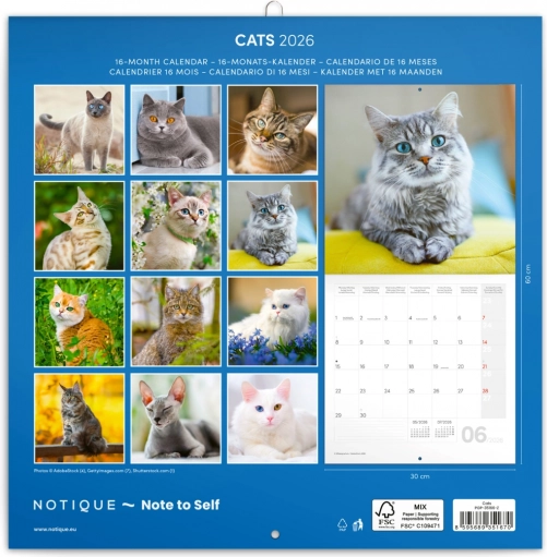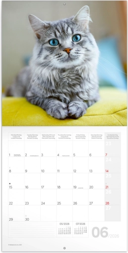 Predstavljamo vam izvrstan bilježnički kalendar za 2026. godinu, savršen za sve zaljubljenike u mačke. Kalendar ima šestojezični kalendarij koji pruža dovoljno prostora za sve vaše bilješke i planove. Omogućuje i laku snalažljivost zahvaljujući uključenim mjesečevim mijenama i važnim blagdanima. S ovim kalendarom imat ćete sve što vam treba za organizaciju vremena: