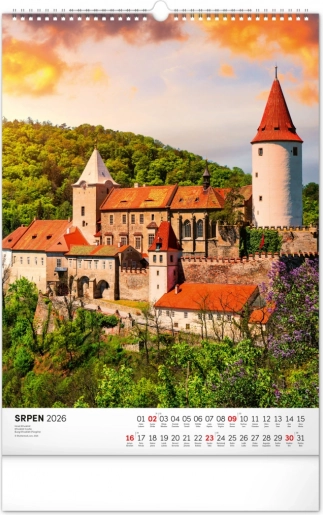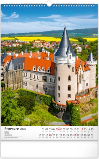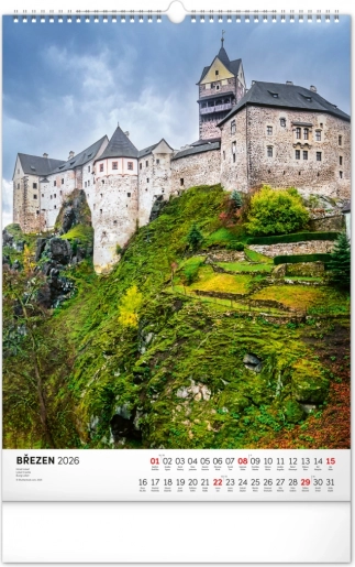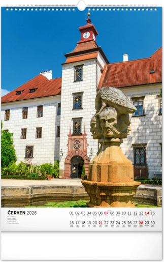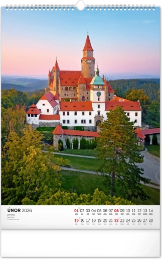 Otkrijte čaroliju povijesnih znamenitosti s našim zidnim kalendarom Dvorci i palače 2026. Uživajte u prekrasnim fotografijama u boji dvoraca i palača kao što su Loket, Lednice, Hluboka i Bouzov.