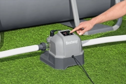 Generator klora Bestway nudi rješenje za one koji žele održati vodu u bazenu čistom bez upotrebe klasičnog klora. Uređaj pretvara sol u prirodni klor, što učinkovito čisti vodu i uništava bakterije. Kupanje je ugodnije, bez iritacije očiju i kože.