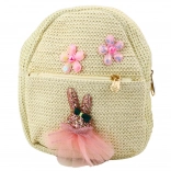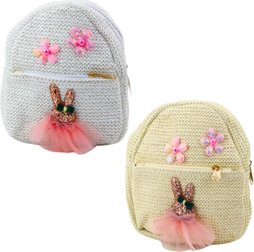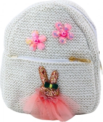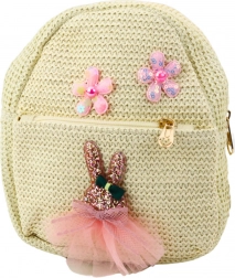 Ruksak ima glavnu pregradu na patentni zatvarač, idealnu za male igračke, dodatke ili užinu. Dodatni džep na prednjoj strani olakšava brz pristup sitnicama. Izrađen je od laganog materijala s teksturom veza, koja mu daje elegantan i nježan karakter.