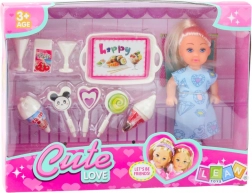 Set sadrži lutkicu visoku 12 cm odjevenu u plavu haljinu s preslatkim uzorcima te tematske dodatke kao što su lizalice, sladoledi, korneti i pladanj s grickalicama. Ovi dodaci ne samo da obogaćuju igru, već potiču razvoj mašte, manulnih vještina i socijalnih sposobnosti djeteta.