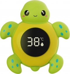 Naša kornjača je idealan termometar za djecu koji može mjeriti kako temperaturu vode, tako i temperaturu u prostoriji. Opremljen čitljivim LCD zaslonom i funkcijom upozorenja bojama za kontrolu temperature, pruža točna i brza mjerenja.