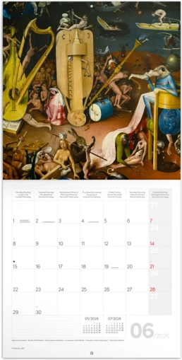 Uputite se u svijet fascinantnih i nadrealnih slika Hieronymusa Boscha s bilježničkim kalendarom za 2026. godinu. Detaljne kompozicije, prepune simbolike i mističnih scena, odvest će vas u umjetnikove fantastične vizije.