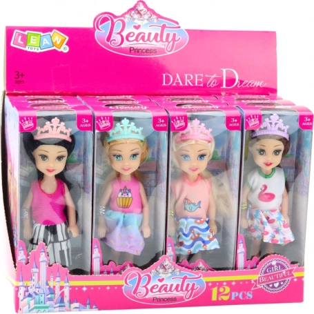 Preslatka mini lutkica princeza sa šarenom haljinom i krunom, idealna za djecu. Sjajan poklon koji potiče bajkovitu igru.