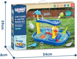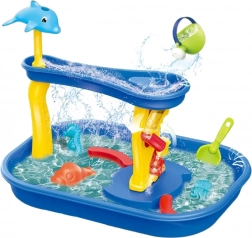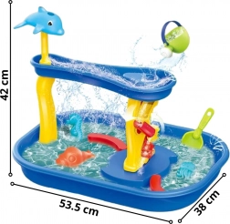 Vodena igračka 2-u-1 s vodenim kolom i vodenim toboganom - idealna za ljeto! Stvorite jedinstvenu zonu za igru djece u vrtu ili kod kuće. Zabavni šareni stol kombinira zabavu ribolova, pokretanje vode i promatranje njezinog protoka kroz zabavne konstrukcije poput vodenog kola ili tobogana s delfinom.