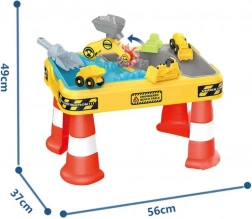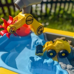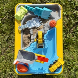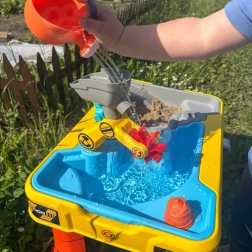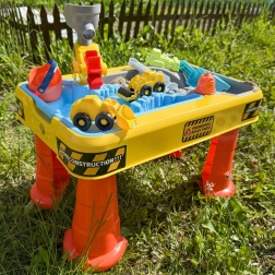 Veliki stolni set s građevinskim motivom donosi djeci sate osjetilne i kreativne igre. Dvostruka komora omogućuje odvojeno punjenje dijela vodom, a dijela pijeskom, pa mali graditelji mogu isprobati kopanje, sipanje, lijevanje i upravljanje vozilima. Zahvaljujući stabilnim “koničnim” nogama stol je čvrst i siguran za vanjsku i unutarnju uporabu.
