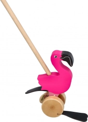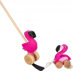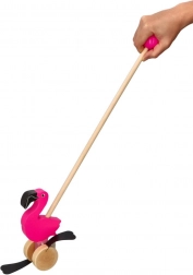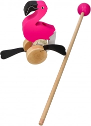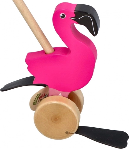 Drveni flamingo na štapu idealan je pratitelj za prve korake. Zahvaljujući glatkim kotačićima i stabilnoj konstrukciji lako se gura, dok pokretni elementi stvaraju zabavan efekt koji motivira djecu na hodanje i istraživanje.