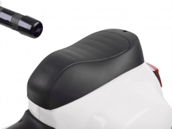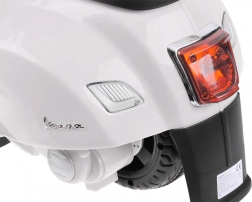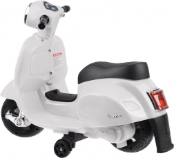 Ovaj dječji električni skuter u VESPA dizajnu razveselit će svakog malog vozača. Kompaktne dimenzije pogodne su za stan i šetnje parkom, a pomoćni bočni kotačići osiguravaju stabilnost pri prvim vožnjama. Realistični elementi poput prednjeg svjetla, instrumentne ploče (naljepnice) i trube na upravljaču doprinose autentičnom doživljaju.