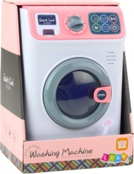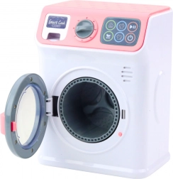 Dječja perilica pokreće se gumbom ON/OFF na dodirnoj ploči. Odaberite jedan od dostupnih programa i perilica počinje raditi - čut ćete zvuk točenja vode i bubanj se okreće, kao da je prava perilica. Dodatna atrakcija je otvaranje prednjeg bubnja i ladica za prašak za još realističniju igru.