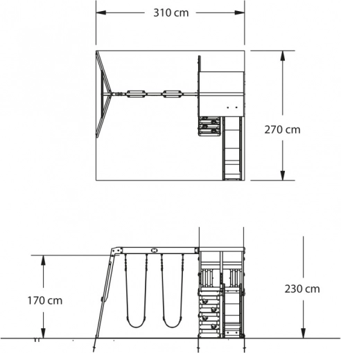 - Pješčanik, 2 ljuljačke, ljestve, penjački zid, tobogan