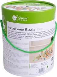 Drvene kocke Šumski svijet od Classic Worlda idealne su za samostalnu i skupnu igru. Ovaj set od 100 dijelova sadrži kocke različitih oblika i boja, uključujući motive stabala, životinja i elemenata prirode. Visokokvalitetna izrada osigurava njihovu izdržljivost i sigurnost tijekom igre.