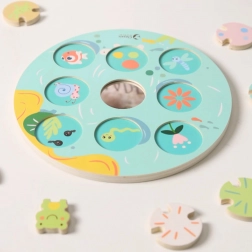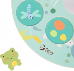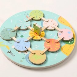 Otkrijte čudesan svijet prirode i ribnjaka s edukativnom igrom „Lotosovi listovi” od Classic World! Ova jedinstvena drvena igra potiče prepoznavanje boja i oblika te razvija dječju kreativnost i logičko razmišljanje.