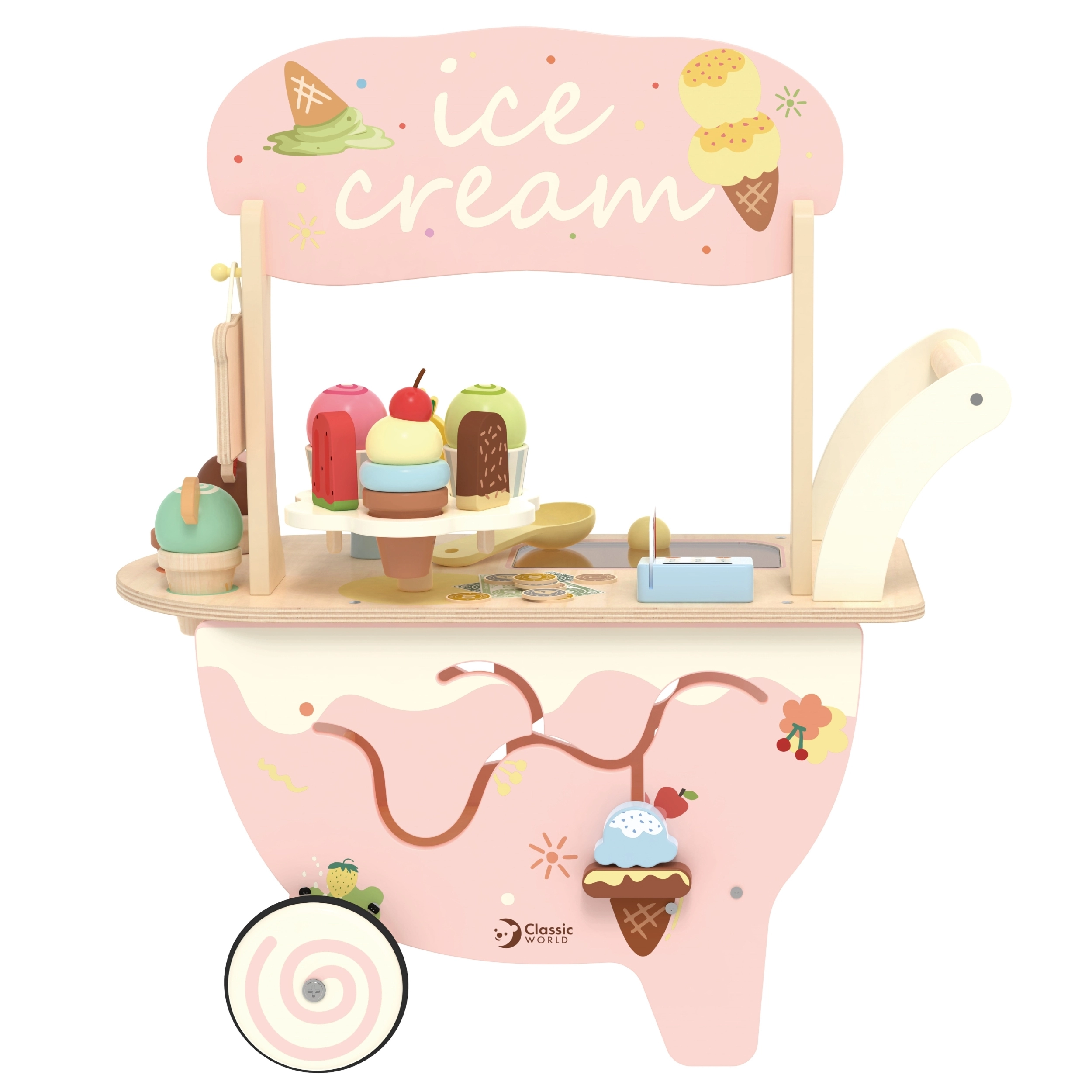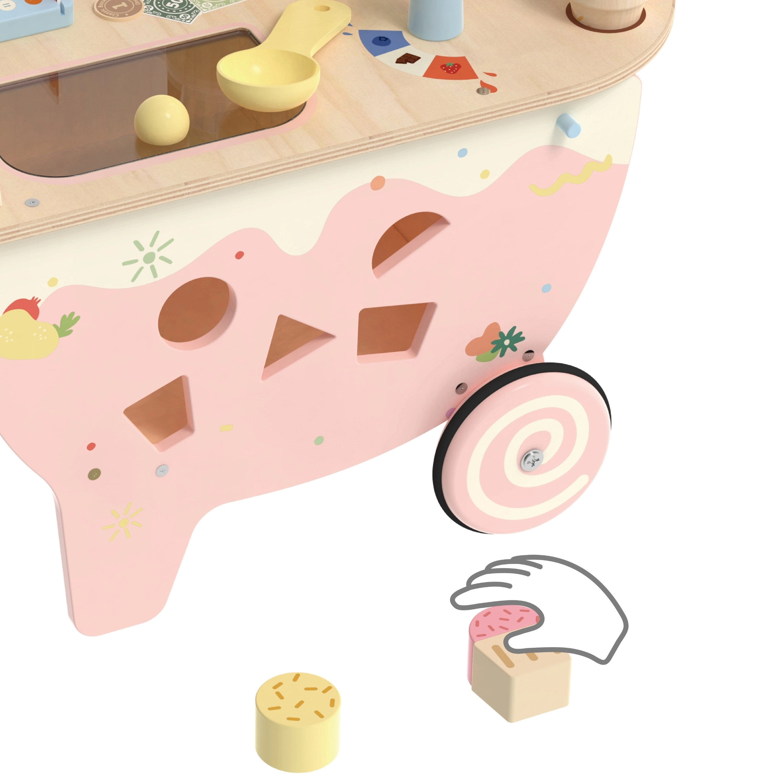 Predstavljamo vam drvenu slastičarnicu 3u1 od Classic Worlda, idealnu za djecu od 3 godine. Ova multifunkcionalna igračka služi ne samo kao slastičarnica, već i kao sortirka, labirint i ploča za crtanje. Izrađena je od izdržljivih i sigurnih materijala, s pastelnim bojama i ukrasnim otiscima koji će se svidjeti svakom malom prodavaču. Zahvaljujući bogatoj količini ledenih dodataka, uključujući različite okuse, dodatke i kornete, djeca se mogu u potpunosti uživjeti u igru trgovine ili slastičarnice.