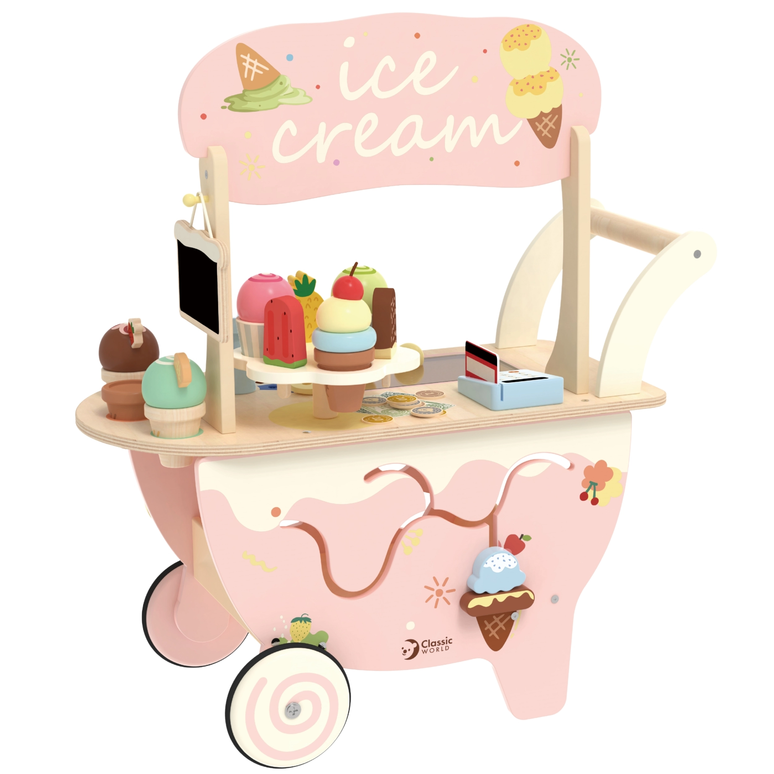 Drvena slastičarnica 3u1 je slatka zabava za svakog malog prodavača! Pretvorite dječju sobu u slatku slastičarnicu s ovim drvenim količem na kotačima od Classic Worlda. Ova jedinstvena edukativna igračka omogućuje djeci posluživati sladolede različitih okusa, razvijati kreativnost i socijalne vještine.