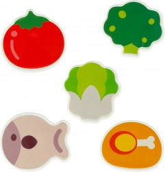 Ploča također sadrži 5 šarenih magneta u obliku hrane, koji pomažu djeci da prepoznaju razne vrste prehrane.