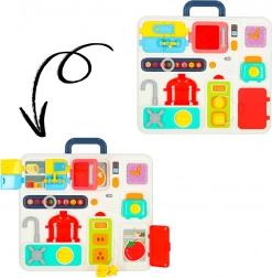Interaktivna Montessori manipulativna ploča pruža djeci mogućnost razvijanja svih svojih osjetila i vještina. Zahvaljujući realističnim zvučnim i svjetlosnim efektima privlači djecu ka kreativnoj igri.