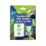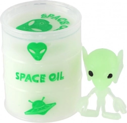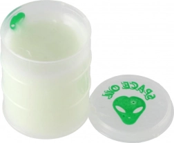 Zabavan i duhovit svjetleći slajm u tematskom buretu sa kolekcionarskom figuricom vanzemaljca razveselit će djecu i odrasle. Slajm je mekan, rastezljiv i elastičan, odlično se stišće, razvlači i protječe kroz prste. Zahvaljujući efektu svijetli u mraku igra je još zabavnija. Kompaktno pakiranje promjera oko 6 cm lako se sprema i idealno je kao mali poklon ili antistres igračka.