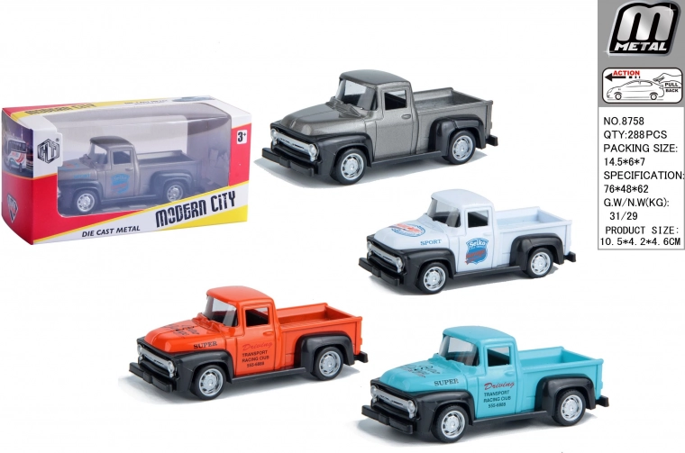 Metalni auto s funkcijom povratnog navijanja odličan je dodatak vašoj kolekciji. Dovoljno je navinuti i otpustiti kako biste vidjeli koliko brzo vozi. 4 različite kolor varijante omogućuju da odaberete izgled prema svom ukusu: