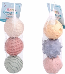 Pripremite se za mnogo zabave s našim setom teksturiranih loptica. Ova kolekcija uključuje tri loptice, svaka s jedinstvenom teksturom, koje donose nove mogućnosti igre i razvoj taktilnih vještina: