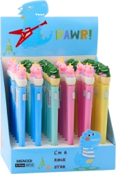 Gornji dio olovke ukrašen je gumenim likom dinosaura koji služi kao dekorativni element i daje cijelini poseban šarm. Zahvaljujući kapici, vrh za pisanje dobro je zaštićen od isušivanja, a ugrađeni gumb aktivira efektno LED osvjetljenje koje se pali pri svakom pritisku.