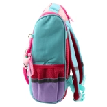 Ruksak ima jednu veliku glavnu pregradu koja pruža dovoljno prostora za knjige, bilježnice i ostale školske potrepštine. Na prednjoj strani nalazi se odvojiva torbica s ptičicom koju je moguće koristiti kao zasebnu pernicu ili ukras. Na patentnom zatvaraču dodatno je pričvršćen privjesak s preslatkim zečićem.