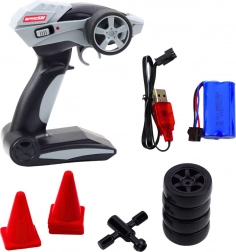 Dio seta je i rezervni set guma, ključ za njihovu zamjenu te čunjevi za vježbanje drifta. Ovaj model razvija motoričke sposobnosti, reflekse te strast prema tehnici i sportskoj vožnji.
