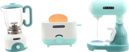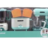 Ovaj realističan set kuhinjskih aparata izmamiti će osmijeh svakom malom kuharu. Mikser se okreće i proizvodi zvukove, pjenjača svijetli i rotira metlicu, a toster nakon umetanja tosta pokreće zabavne zvučne efekte. Sve je izrađeno od izdržljive plastike i prilagođeno dječjim rukama.