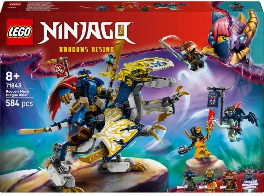 Otkrijte dinamični svijet NINJAGO s pregradivim setom koji omogućuje djeci od 8 godina da ožive scene iz 3. sezone serije Ustanak zmajeva. Pojedinačno upravljivi mech s mačem i zmajski stroj s pomičnim krilima, glavom, čeljusti, nogama i repom mogu se spojiti u impozantnog Mehaničkog jahača zmaja Rogue. Za napete bitke brinu 4 minifigurice uključujući protivnike Roxa i Ratnika Spektralnih zmajeva sa standaradom s tajnom porukom.