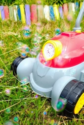Ova dječja puhačka mjehurića nudi dva načina igre: prvi omogućuje neprekidno puhanje mjehurića, drugi dodaje svjetla i glazbu za još veću zabavu. Dovoljno je uvrnuti priloženu otopinu u donji dio, pritisnuti gumb i gledati kako se prednji dio “motora” pretvara u predstavu mjehurića.