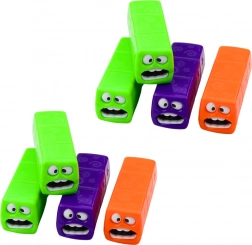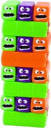 Toranj od 24 plastične kockice s utisnutim licima simpatičnih bubica u tri izražajne boje: zelenoj, narančastoj i ljubičastoj. Zabavna igra slaganja tornja i izvlačenja kockica odozdo, a da se ne sruši. Jednostavna pravila donose puno emocija i smijeha, čak i za najmlađe.