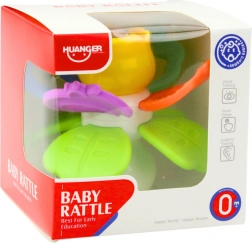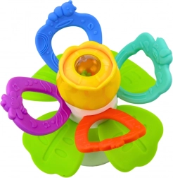 Rotirajući središnji dio cvijeta potiče dijete na aktivnost i jačanje ruku. Šarene latice izrađene su od mekog, elastičnog materijala pogodnog za grickanje – idealno tijekom razdoblja nicanja zubića. Obogaćen je sitnim kuglicama unutar cvijeta koje nježno zveckaju pri pokretu, stimulirajući djetetov sluh i vid.
